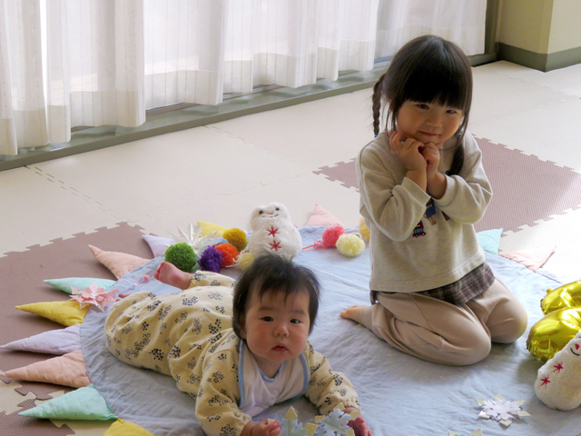 2026年2月「こども広場」のアルバム 2026-03-23 2026年2月「こども広場」の様子、フォトギャラリーです 節分👹 一緒にぽっとん落とし♪ 仲良くごろ~ん😀 制作「簡単かわいいうさぎびな」 ピアノ演奏中~♬🎹 親子で遊ぼう「歯みがき講座」🦷 まったり読書タイム📖 上手にぽっとん出来たね😀 2月のベビーフォト📷 あおむしゲット✨